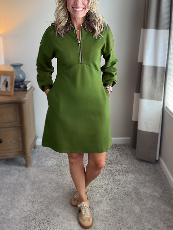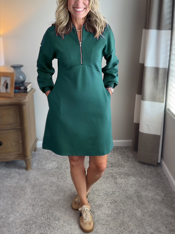 The cotton crew neck zip pocket dress is a versatile and stylish addition to any wardrobe. With its unique design elements and comfortable fit, it is perfect for both casual outings and more formal occasions. Embrace the effortless elegance of this dress and let it become your go-to piece for a variety of events.