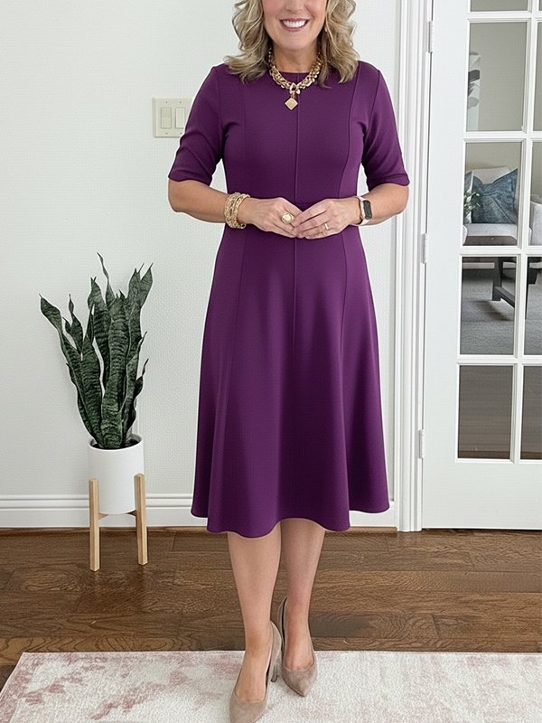The crew neck vertical striped elegant dress is a versatile and stylish addition to any wardrobe. With its unique design elements and comfortable fit, it is perfect for both casual outings and more formal occasions. Embrace the effortless elegance of this dress and let it become your go-to piece for a variety of events.