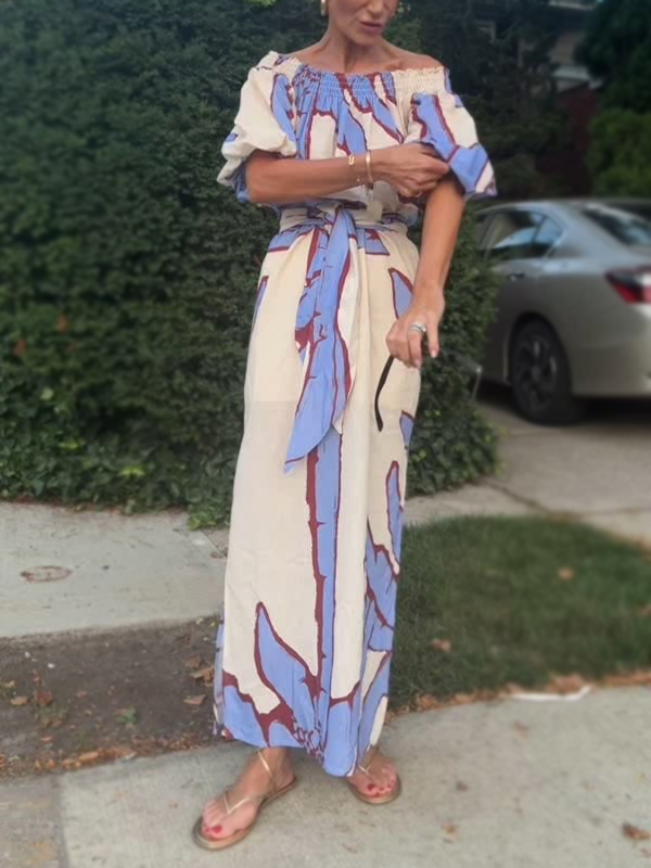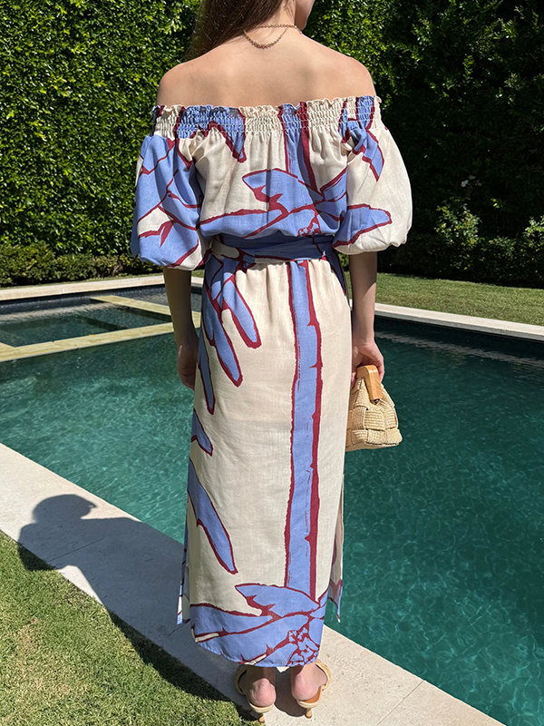 The Linen Tie Bubble Sleeve Printed Dress is designed for the modern woman who cares about sophistication and style. The elegant Maxi long dress is perfect for any occasion.