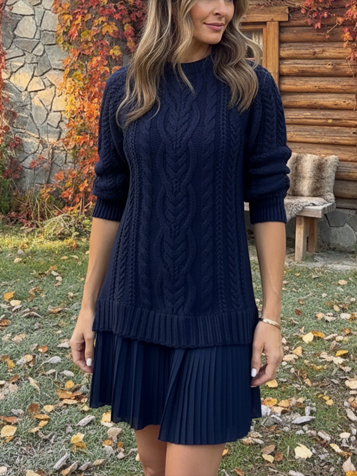 The round neck ribbed wool knit dress is a versatile and stylish addition to any wardrobe. With its unique design elements and comfortable fit, it is perfect for both casual outings and more formal occasions. Embrace the effortless elegance of this dress and let it become your go-to piece for a variety of events.