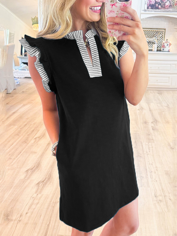 Timeless Elegance: Ruffle Hem Patchwork Mini Dress