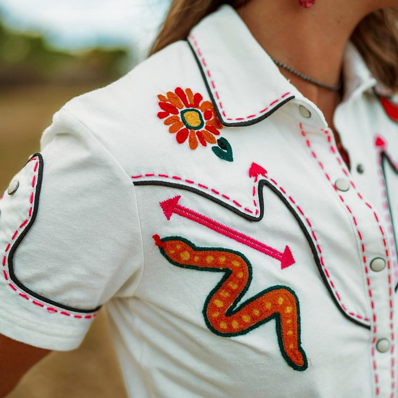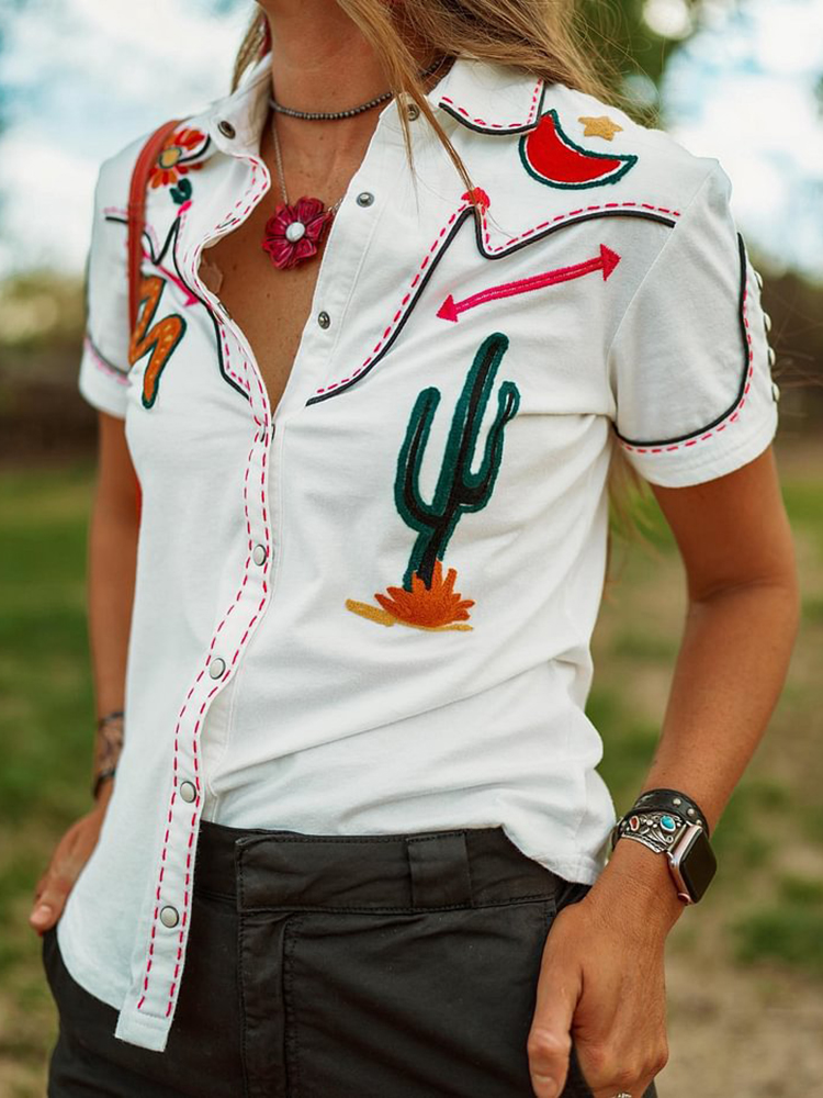 VChics Casual Fun Cactus Western Style Contrasting Colors Rodeo Shirt