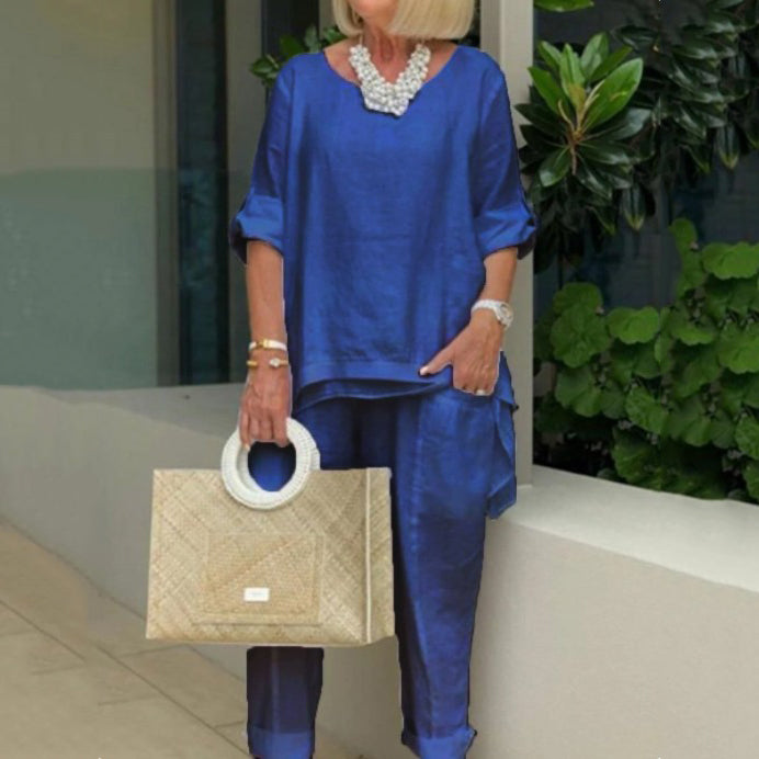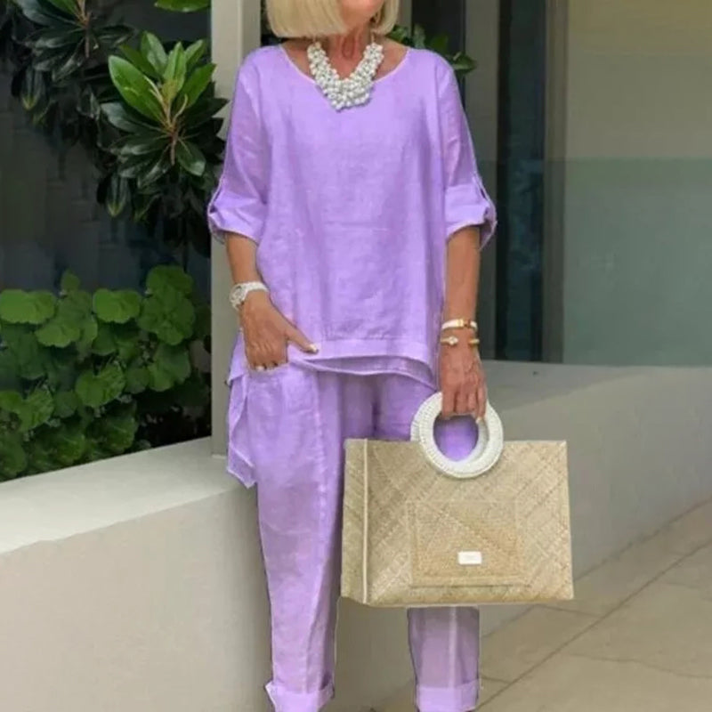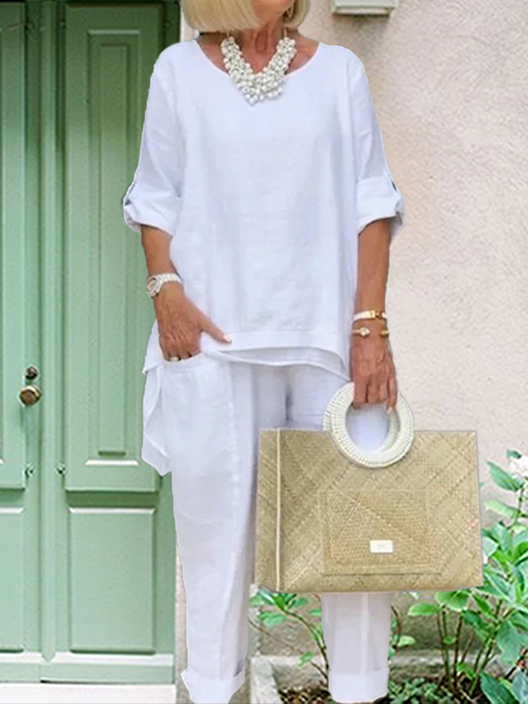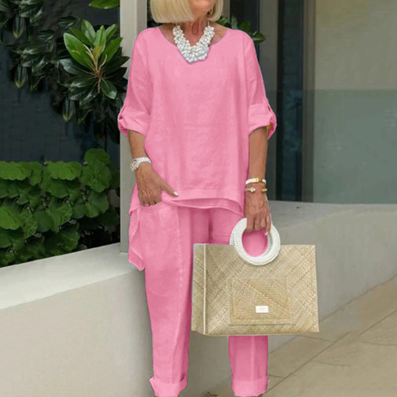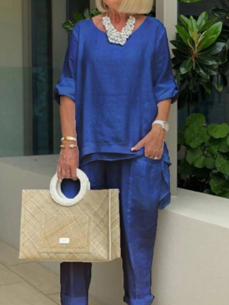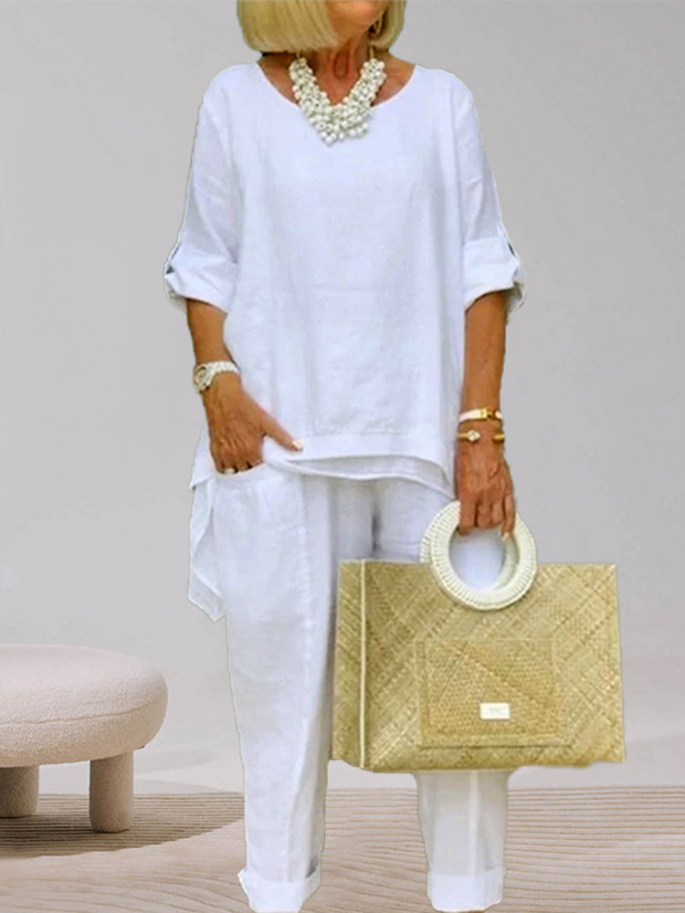 VChics PLUS Cotton Linen Tunic & Pants Two-piece Set