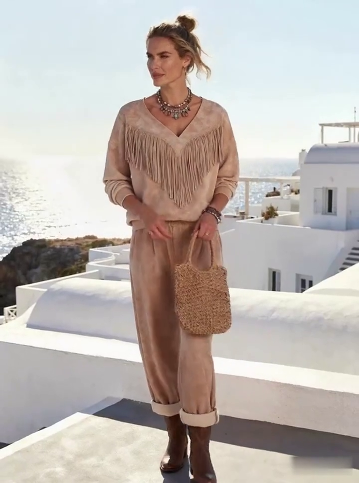 Women'S Casual Loose Tassel Patchwork Pants Suit